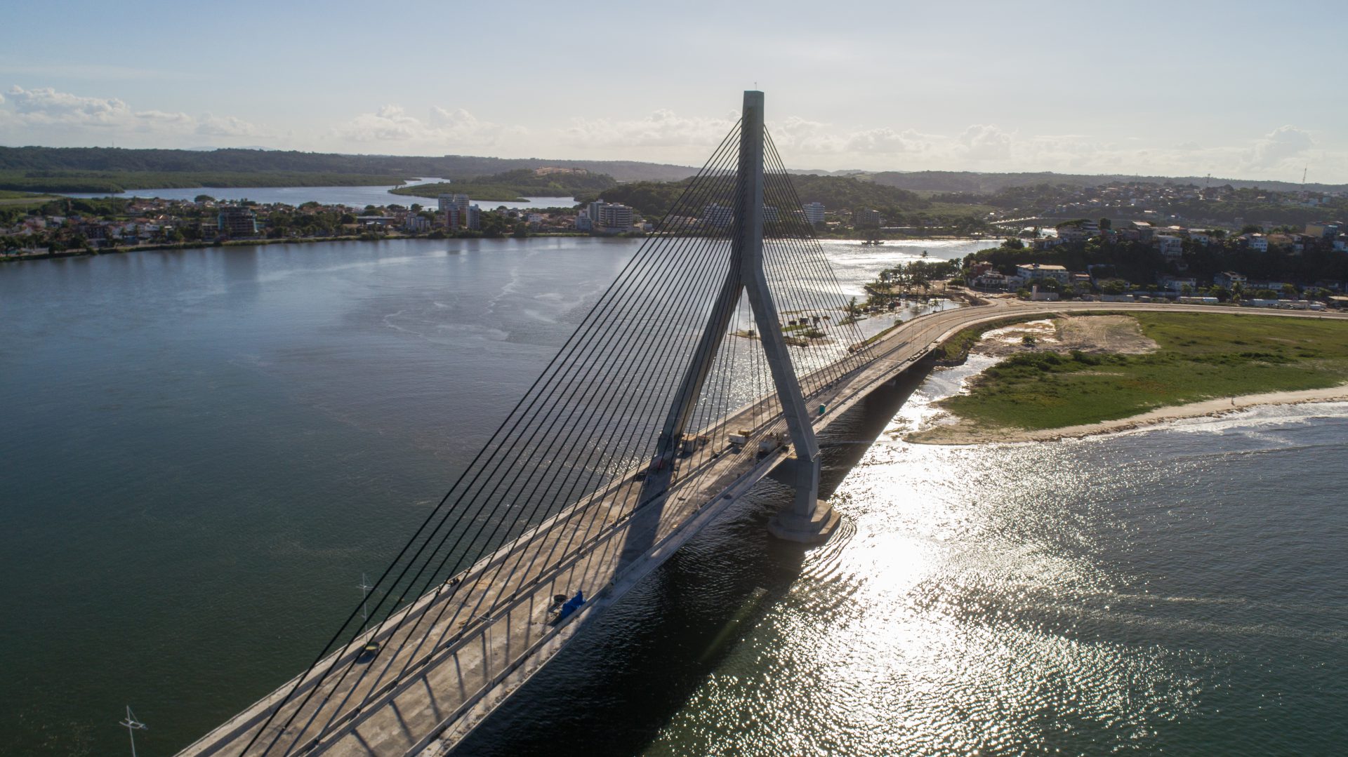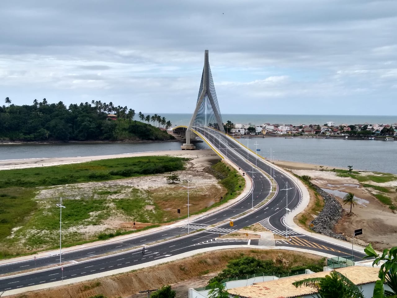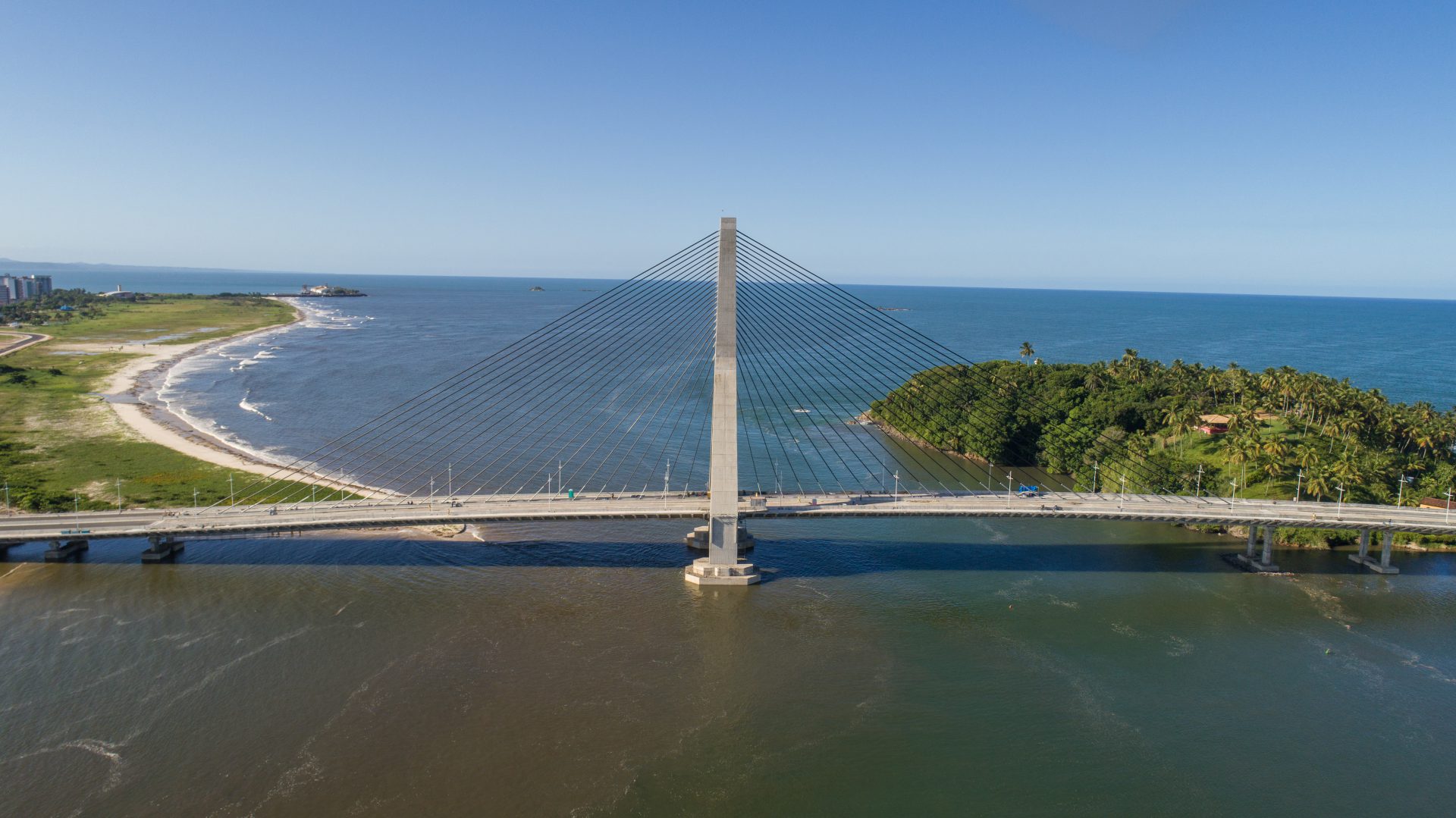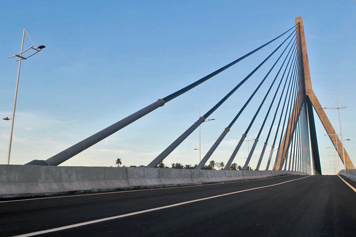 Características Técnicas: A solução técnica adotada foi uma ponte estaiada com mastro único, caracterizada por dois vãos livres simétricos e consecutivos de 149 metros, enquanto os demais vãos foram construídos com estrutura convencional. Com uma extensão total de 533 metros, as dimensões da ponte abrangem duas pistas de 8,0 metros, quatro defensas de 0,40 metros, duas ciclovias/passeios de 2,50 metros e um canteiro central de 1,20 metros, resultando em uma largura total de 23,80 metros.